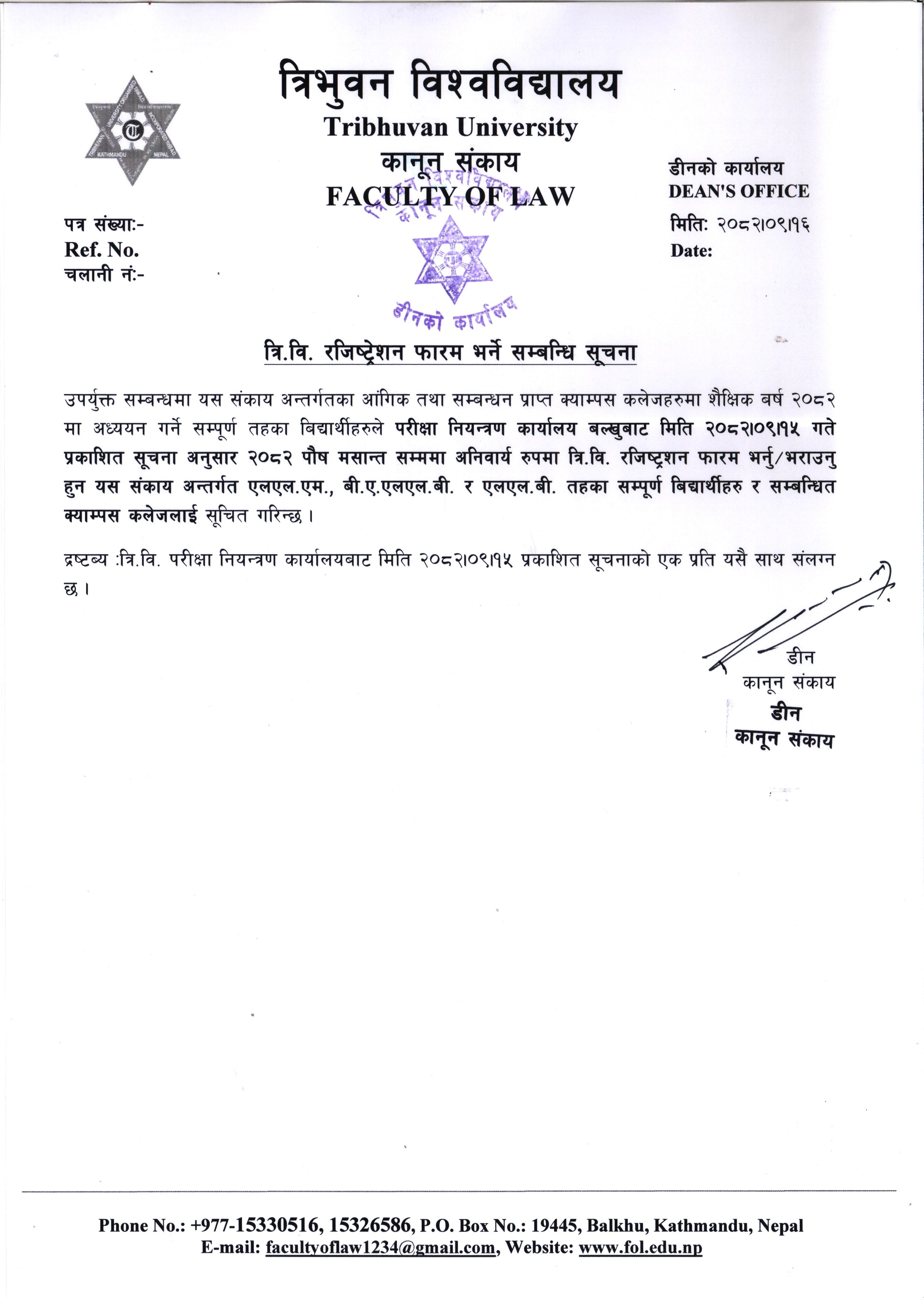 Notice regarding ONLINE Entrance Examination Application Form Call of 3 Years LL.B. 2082/83