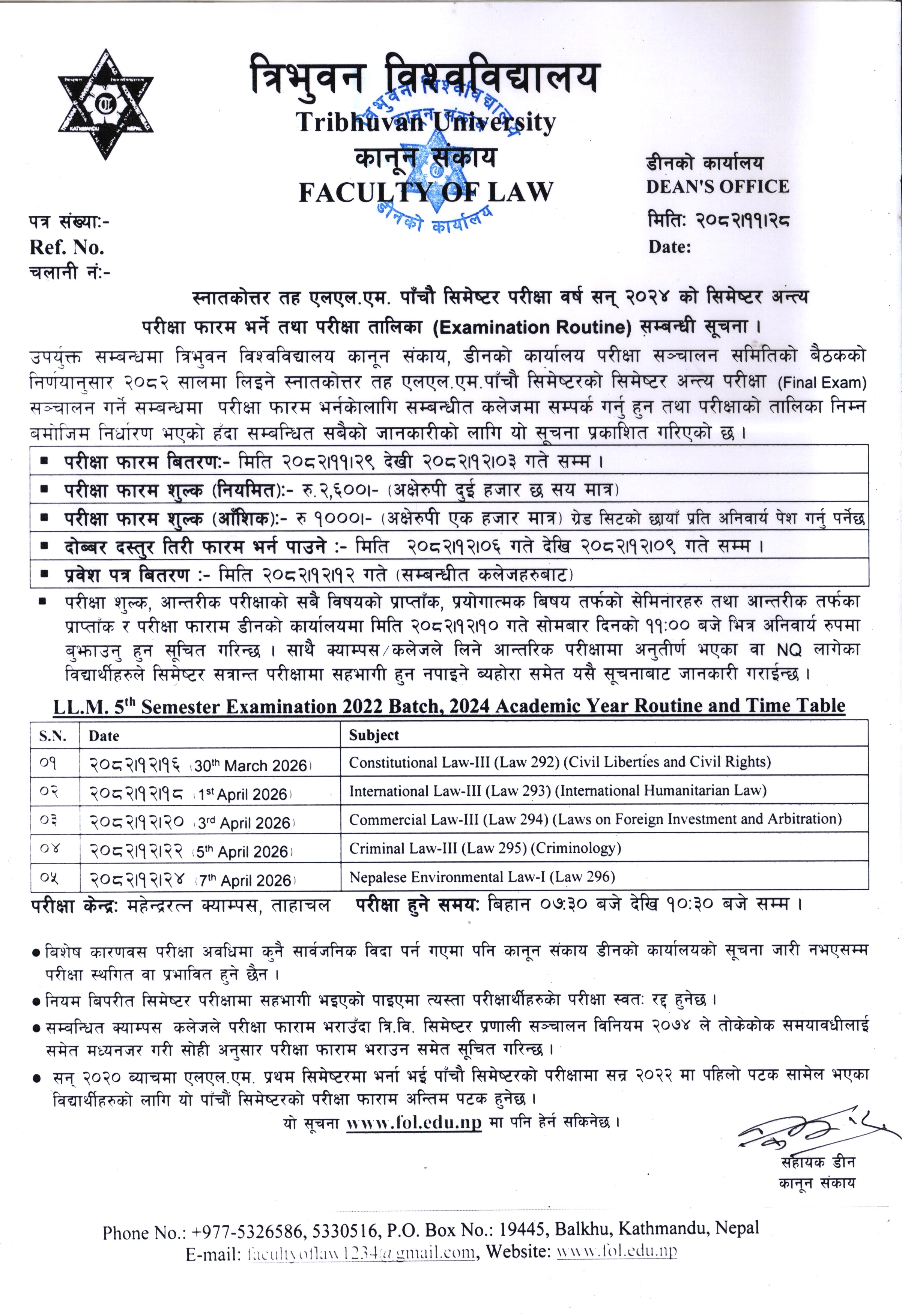 Routine of LLM 5th Sem 2022 Batch 2024 A.Y.