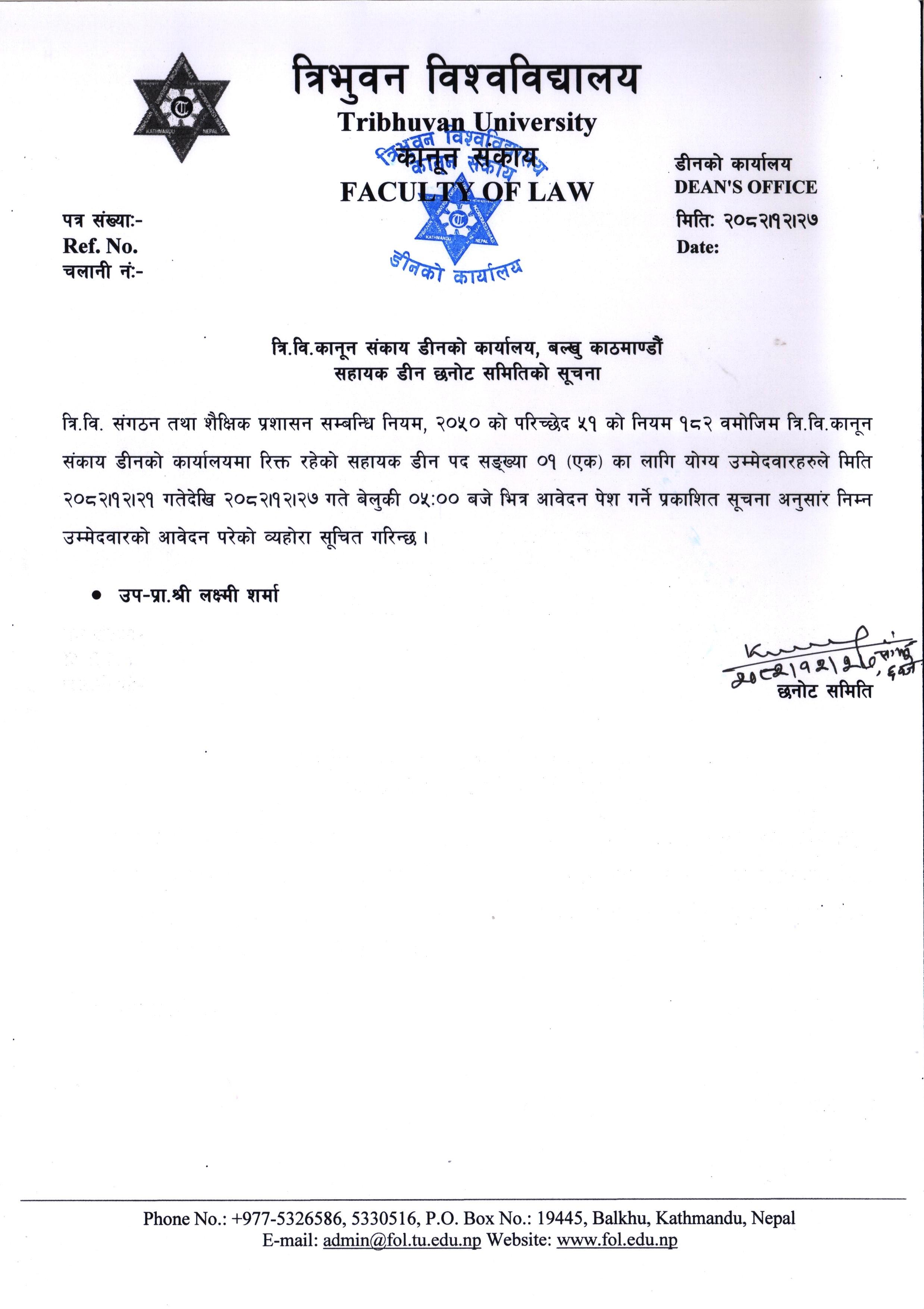 Notice regarding ONLINE Entrance Examination Application Form Call of 3 Years LL.B. 2082/83