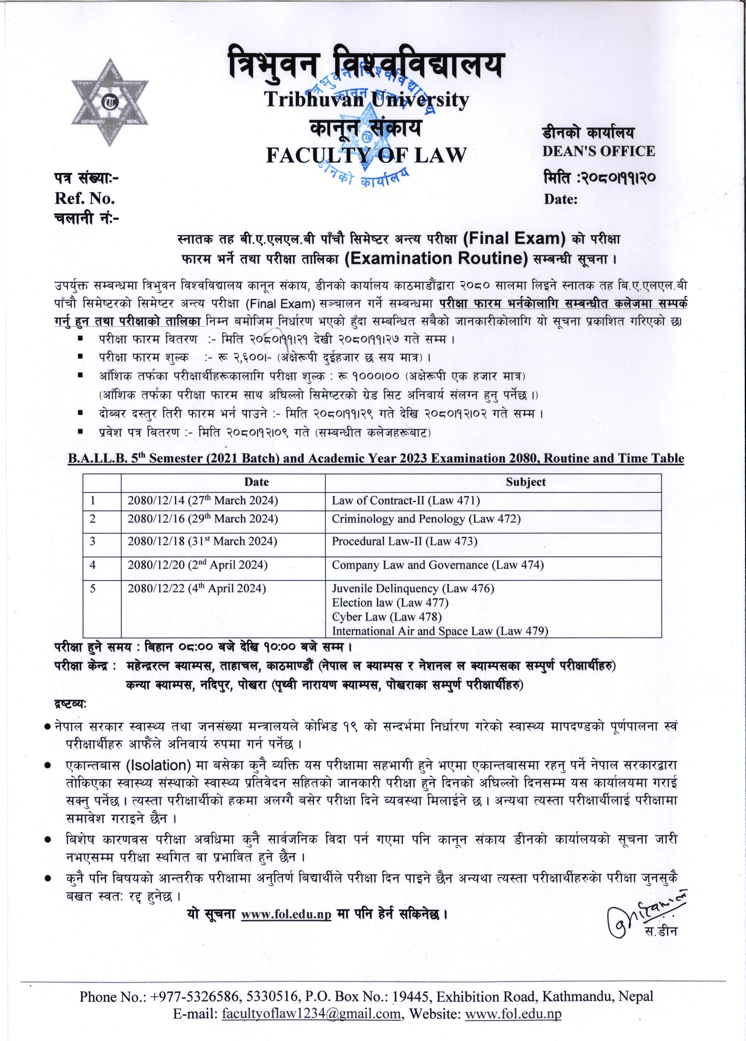 B.A.LL.B 1st Semester 2082 (2026) Batch and Academ...