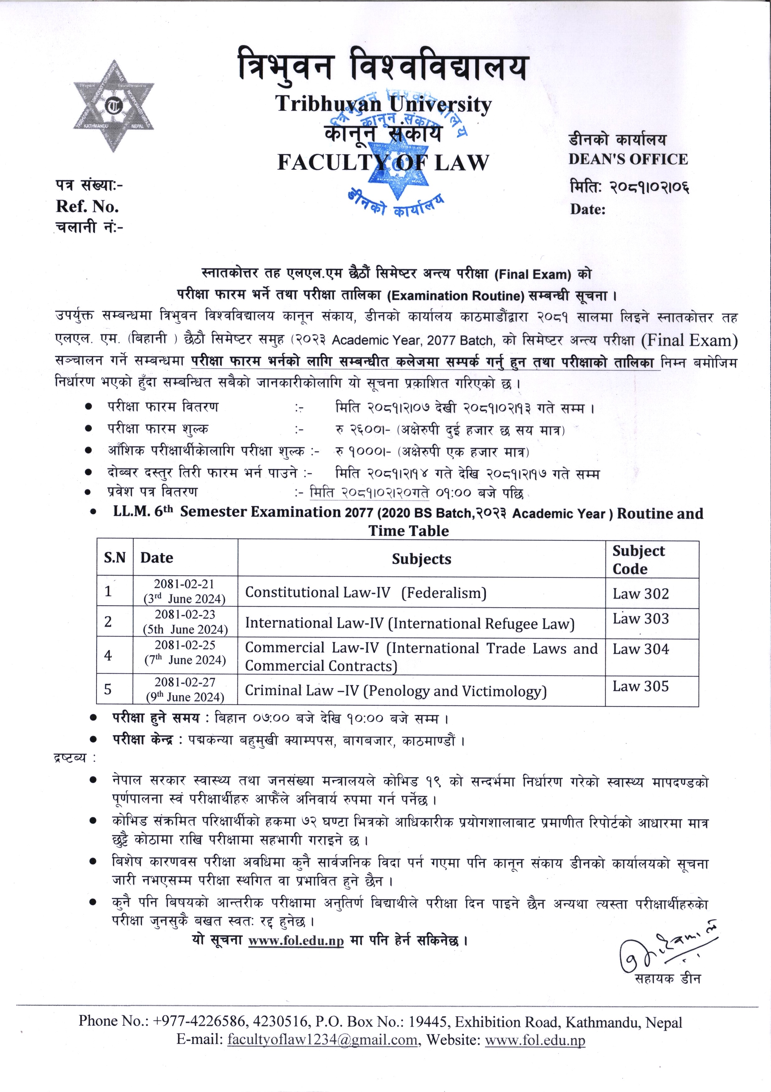 LL.M. 6th Semester 2077.2020 Batch Academic Year 2023