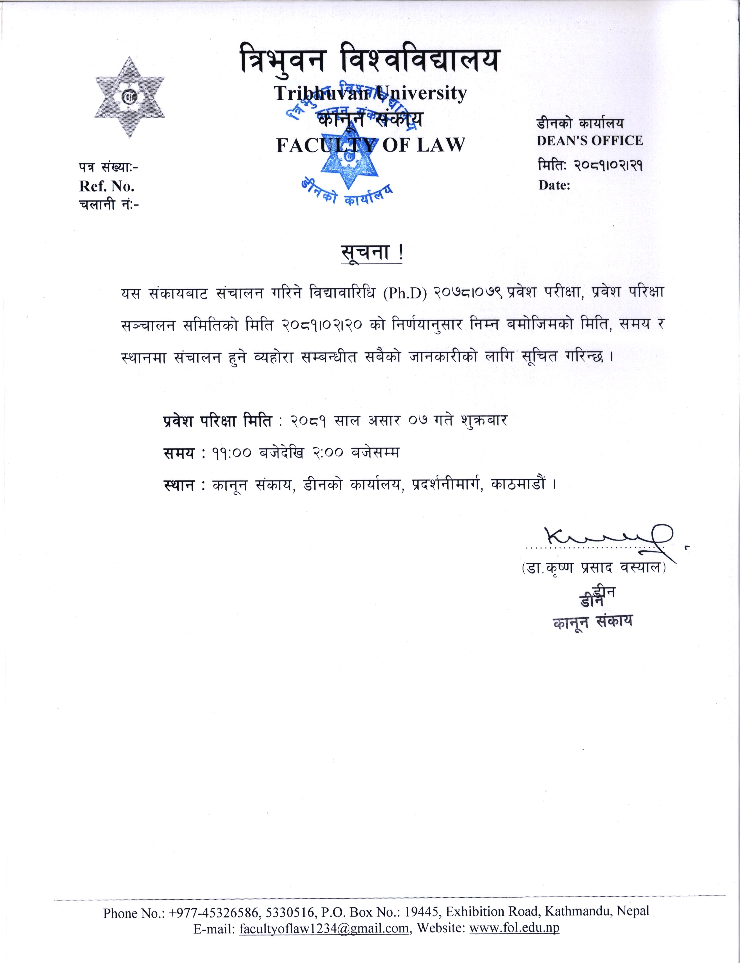Notice regarding PhD Entrance Examination 2078/79 Batch Time Table and others