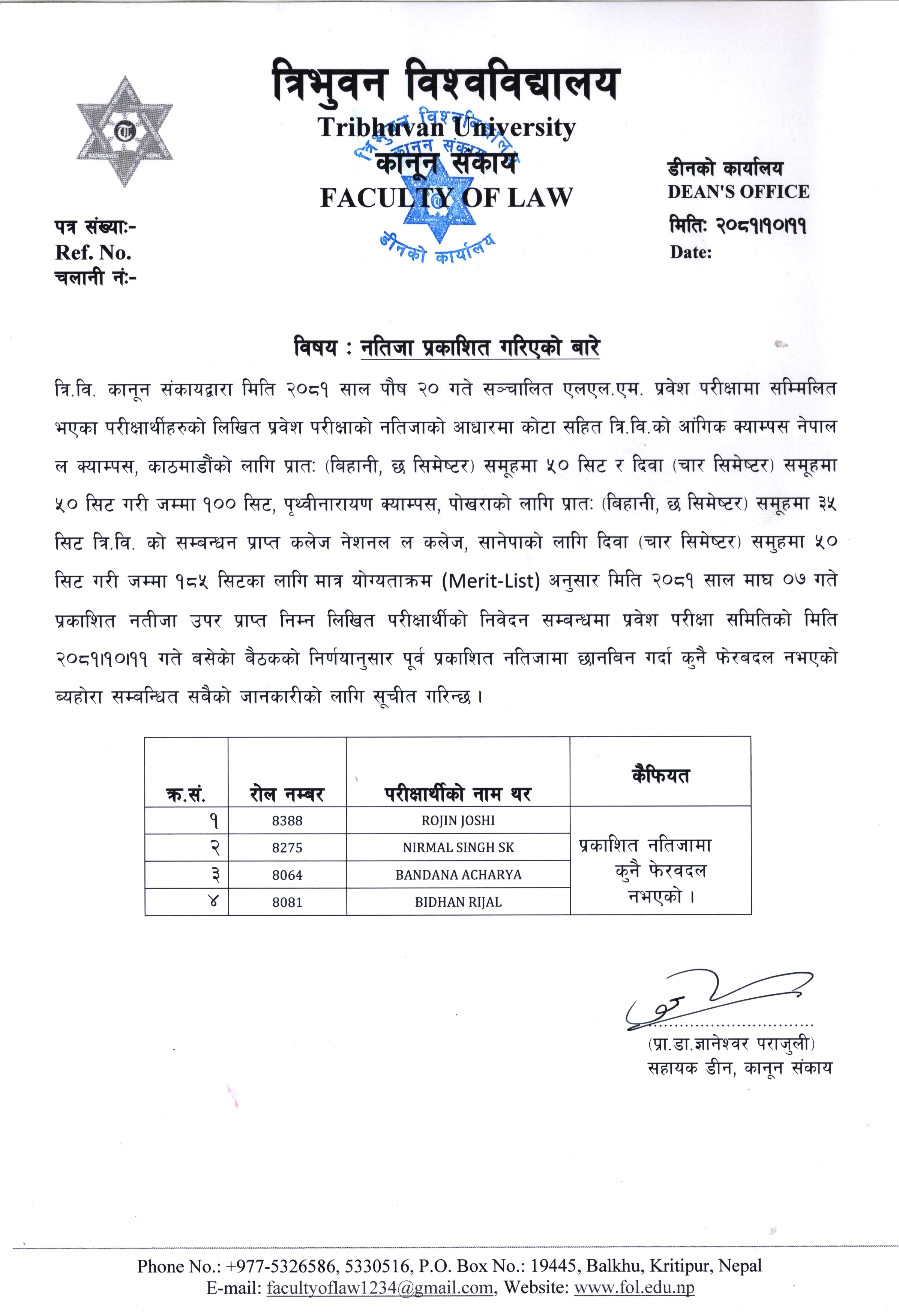 Result of LL.M. Entrance Examination 2080/81 (AFTER RETOTALING)